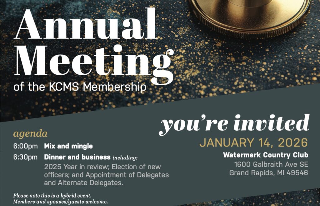 KCMS/KCOA Winter 2025 Bulletin Read More E-cigarette and Novel Tobacco Product Education for the Healthcare Provider Read More KCMS 123nd Annual Meeting Read More Physician Wellbeing Resources – Reading and Watching Read More 2025 Legislative Session Read More Is Your License Expiring Soon? We’ve Got You Covered with LARA Required CME Read More Reminder! KCMS Membership Dues Read More CME Opportunities Available Read More Upcoming Events See All Events Recent Bulletins KCMS/KCOA Winter 2025 Bulletin KCMS/KCOA Fall 2025 Bulletin KCMS/KCOA Summer 2025 Bulletin See All Bulletins